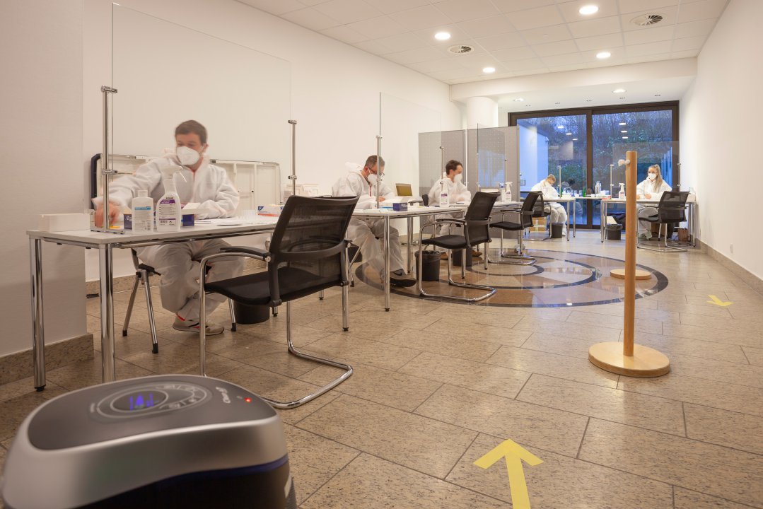 Bitte folgen Sie einfach der Beschilderung in unseren Raum 22 im Erdgeschoss. Gehen Sie nicht durch unseren Haupteingang, nutzen Sie bitte den Zugang rechts daneben. Unsere öffentlichen Bereiche und Sanitäranlagen stehen Ihnen erst NACH Ihrem negativen Testergebnis zur Verfügung. Danke für Ihre Beachtung.