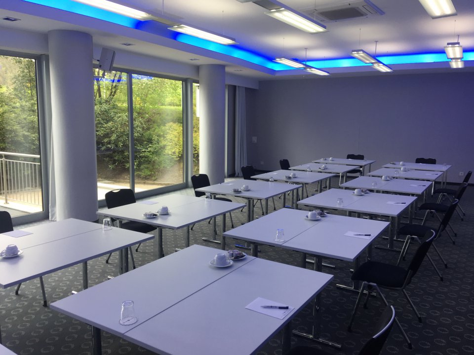 - Große Räume mit Trennwänden ermöglichen z.B. auch Tagungen mit bis zu 30 Personen in U-Form