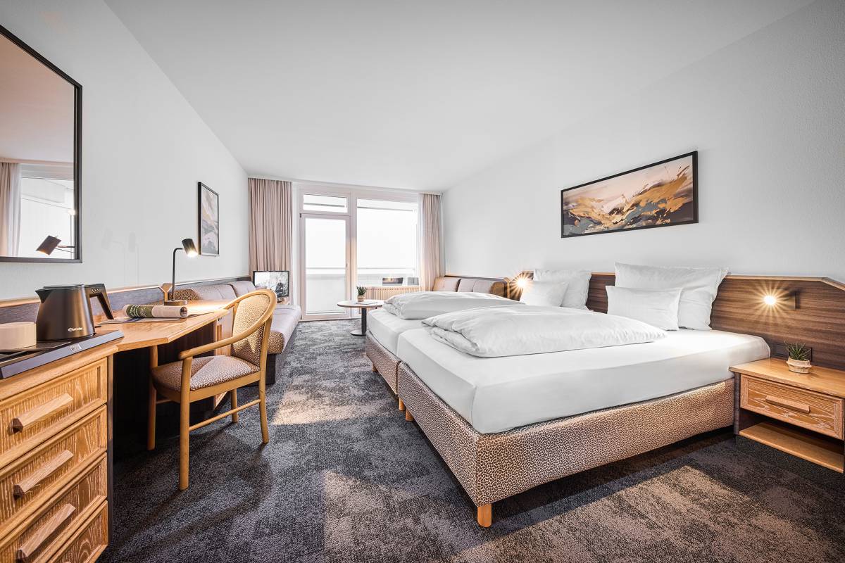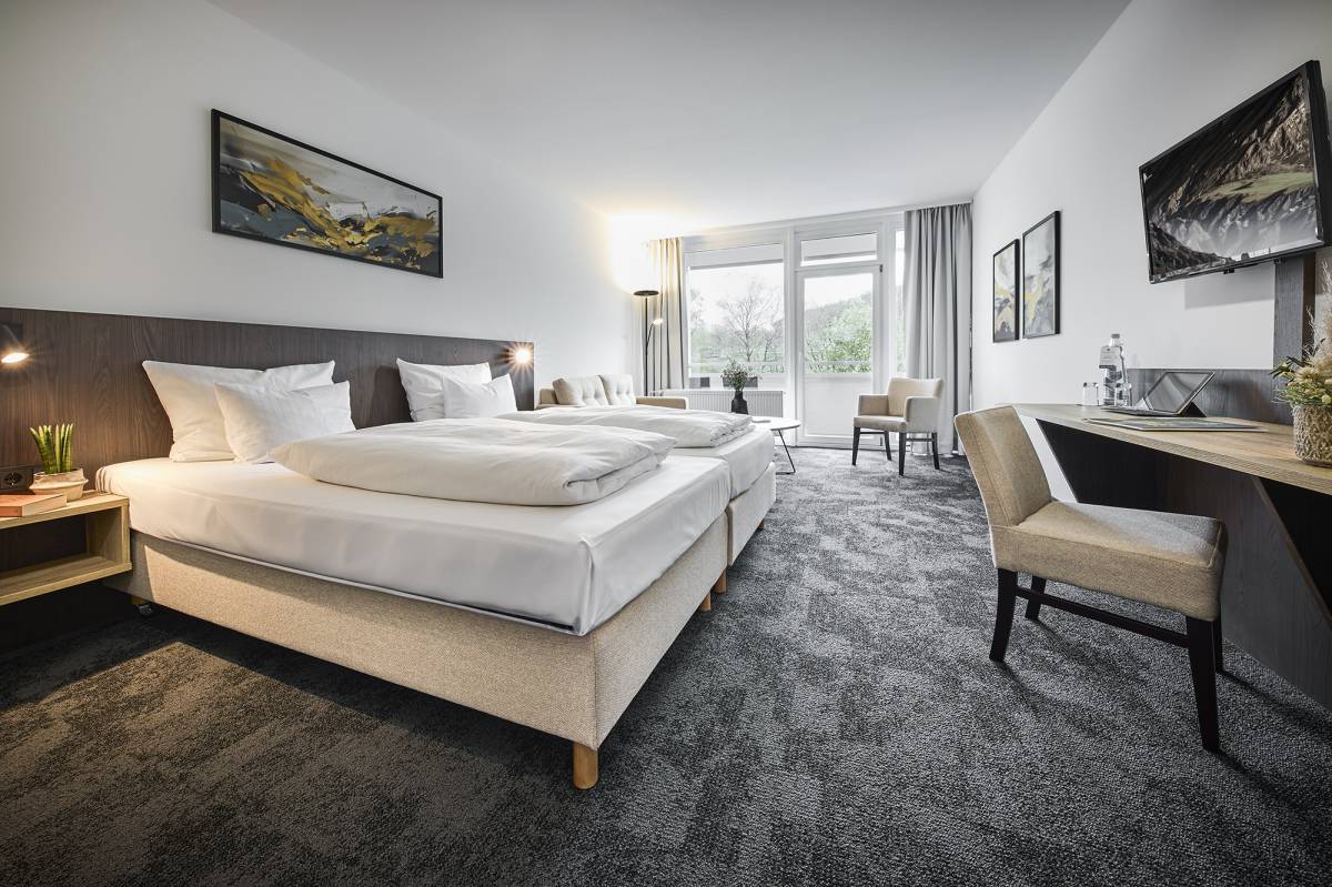 Modern eingerichtetes Doppelzimmer im Sauerland Stern Hotel WillingenProspekt und Deko-Vase im Sauerland Stern Hotel WillingenKomfortzimmer Plus Bild-3Komfortzimmer Plus Bild-4Komfortzimmer Plus Bild-5Komfortzimmer Plus Bild-6Kuscheldecke auf einem Sofa im Sauerland Stern Hotel WillingenKomfortzimmer Plus Bild-8